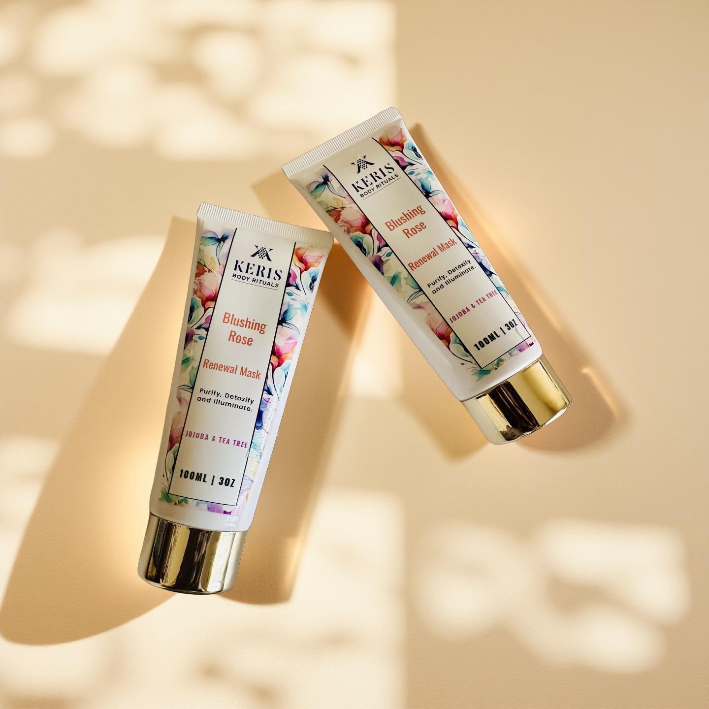 Renew and rejuvenate your skin with the Keris Blush Renewal Mask—a luxurious mix of Pink Clay, Bentonite, and Kaolin that purifies and detoxifies to reveal a naturally glowing complexion. Enriched with Honey, Jojoba Oil, Tea Tree Oil, and Vitamin E, this mask deeply cleanses and gently exfoliates to eliminate impurities, excess oils, and dead skin cells. Your skin is left feeling refreshed, balanced, and delightfully silky.
